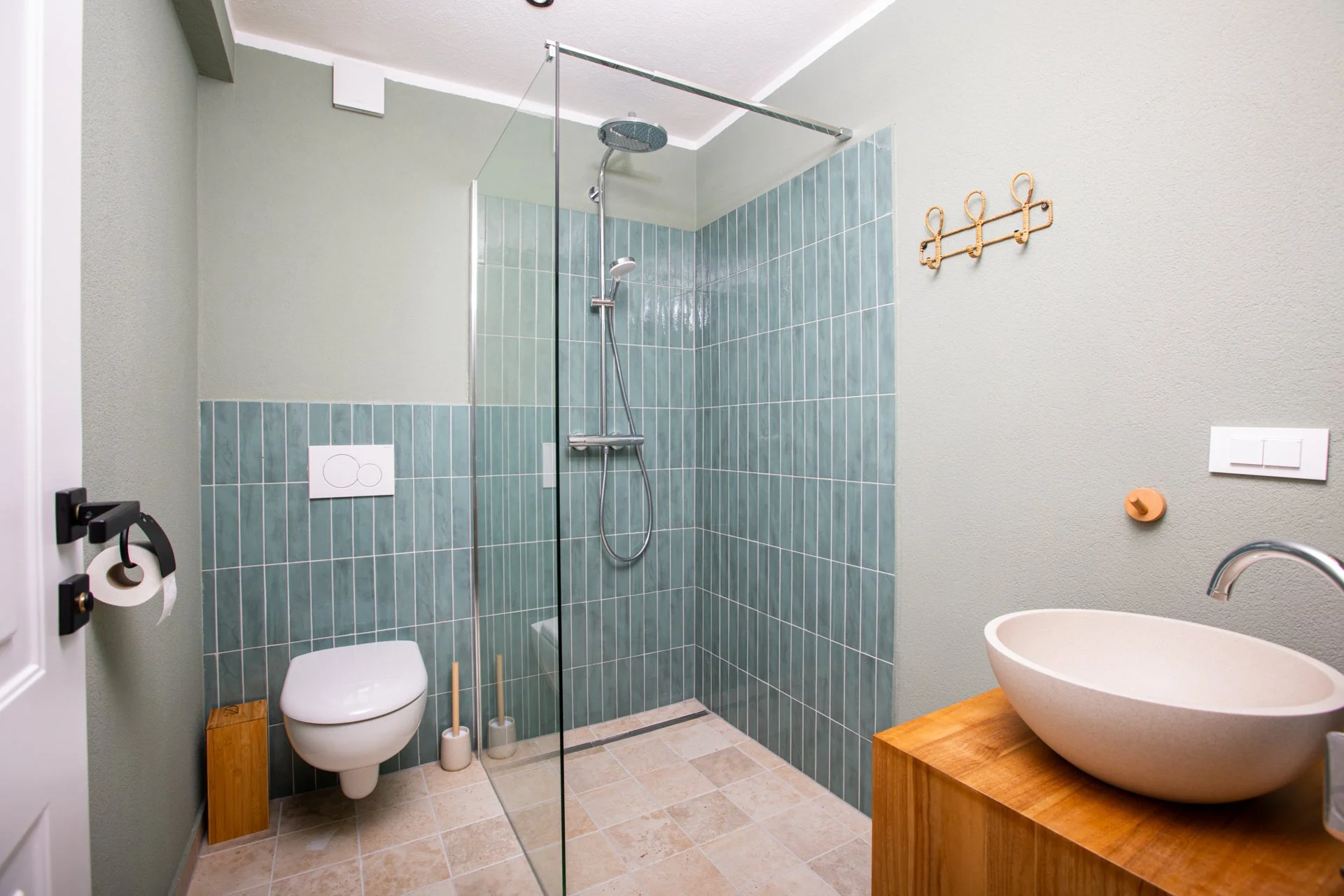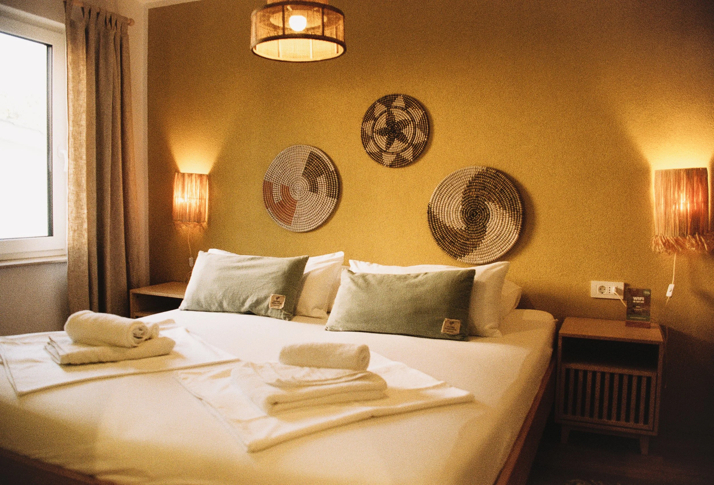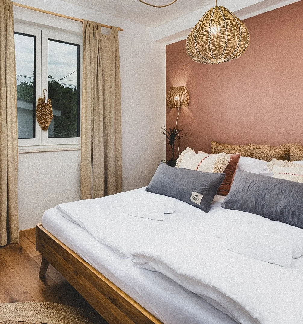 Located in the heart of Punat on the Croatian island of Krk. Situated just steps away from the marina, local restaurants, and the beach, this property offers the perfect balance of privacy and convenience. The interior features parquet flooring, color‑accented walls, and stylish textiles, creating a warm and inviting Boho atmosphere .